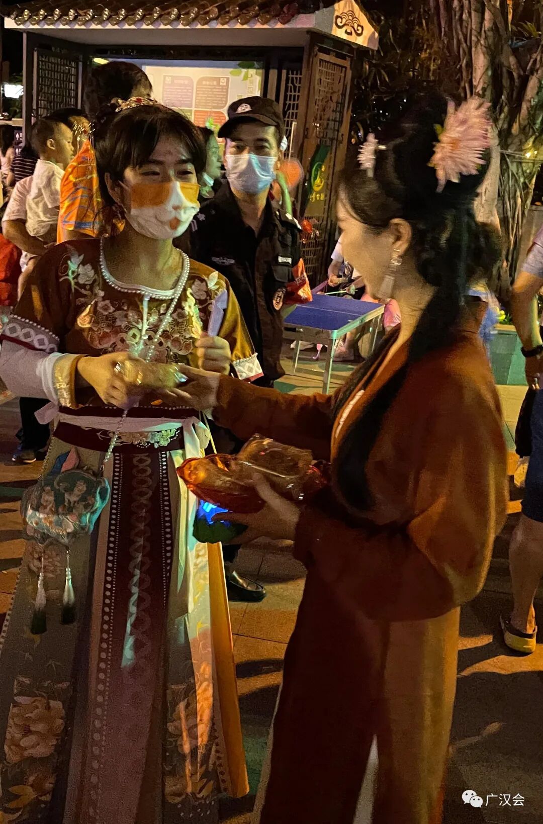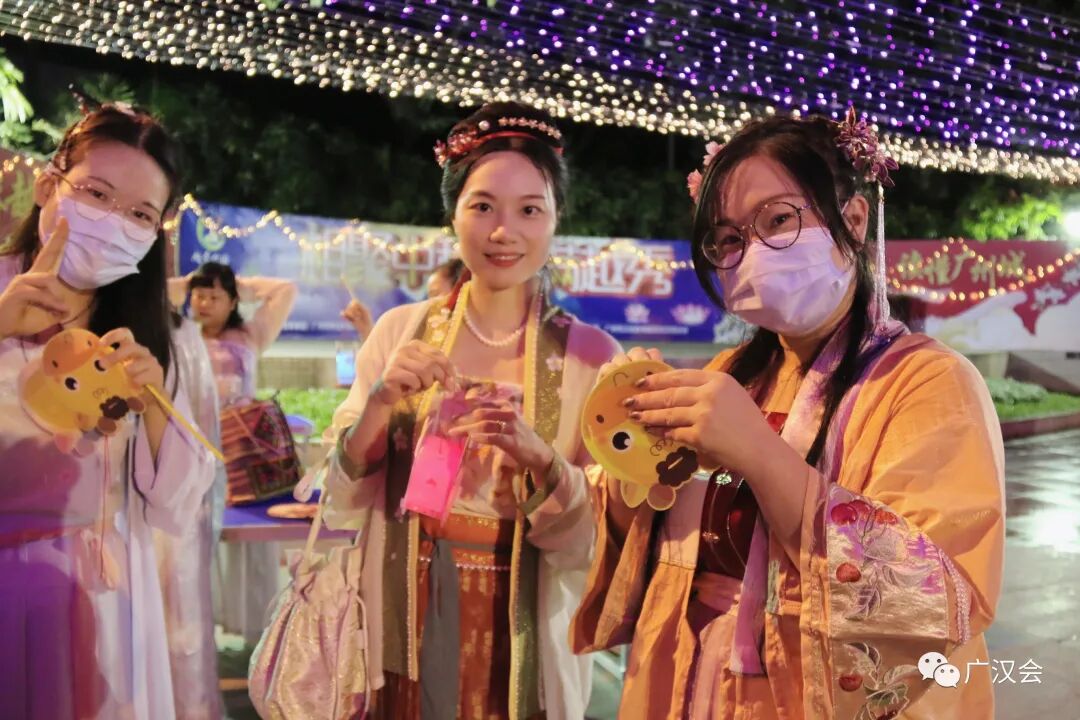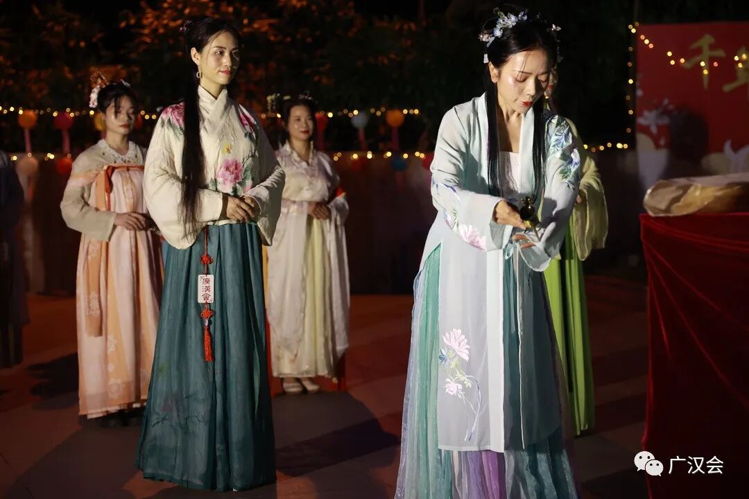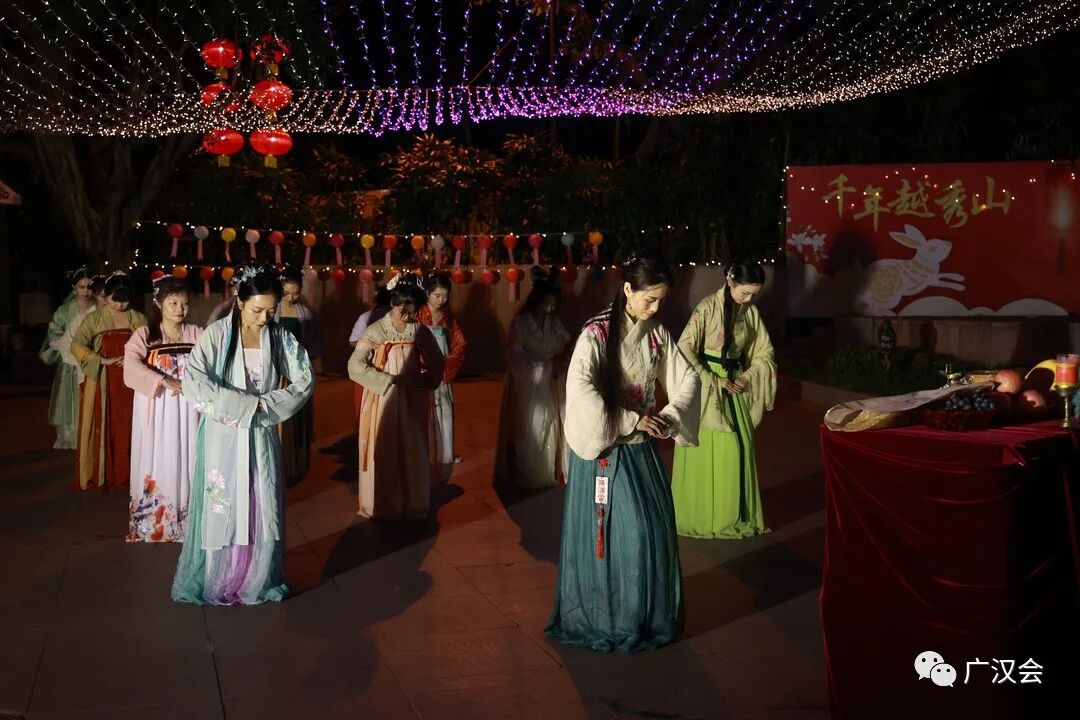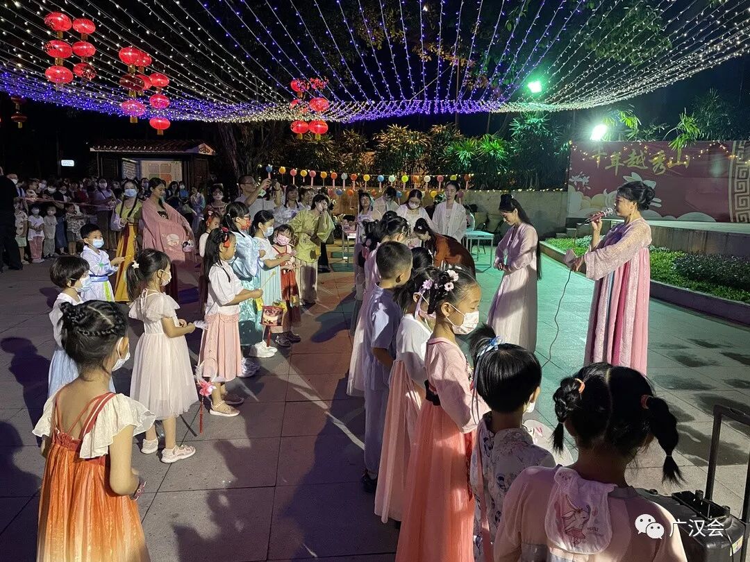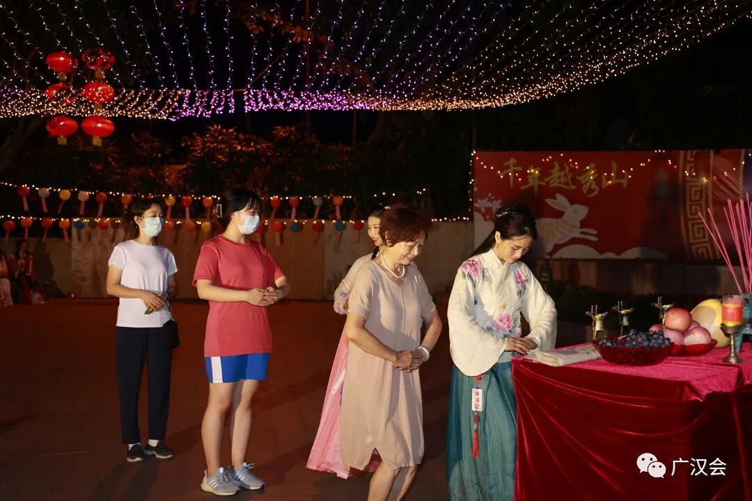 在拜月祈福前,先学习一下行汉礼(男子行揖礼、女子行肃礼)。 具体礼仪学习请点击:汉服礼仪讲座 以下拜月仪式的照片为19日央视拍摄现场 今年的祝文考虑到疫情的关系特意加入健康祈福 雪溪姐姐原创的灯谜,哪位小朋友猜到了呢? 上沫卿的独舞表演 洛离、洛儿、雪溪的群舞表演 钰瑶的古琴演奏 上官圈圈不但表演剑舞,还亲手做的月饼来作为交换礼物 静静的云彩亲自手绘的团扇,哪位幸运的同袍收到呢? 大家上台交换礼物,其中同袍清影还准备了两件汉服, 作为现场幸运街坊的礼物,真正让广州街坊“贴身”了解汉服