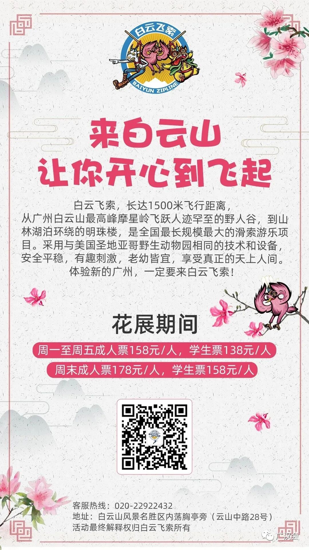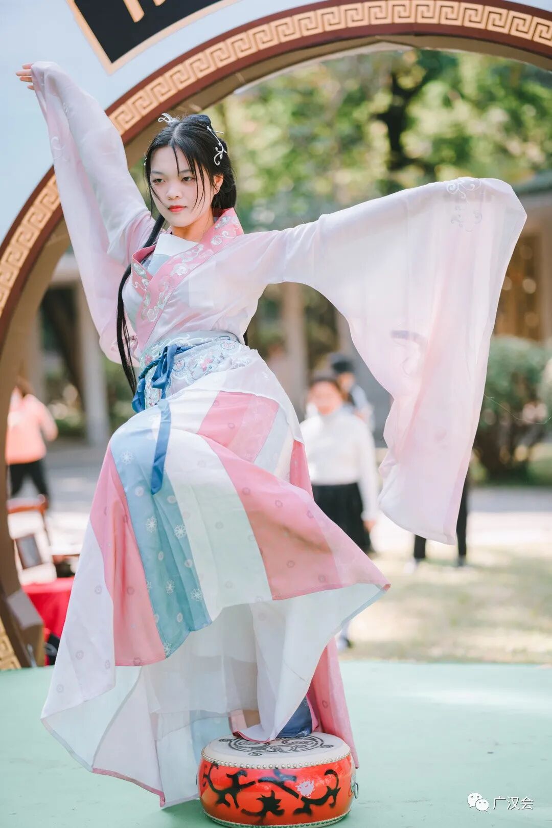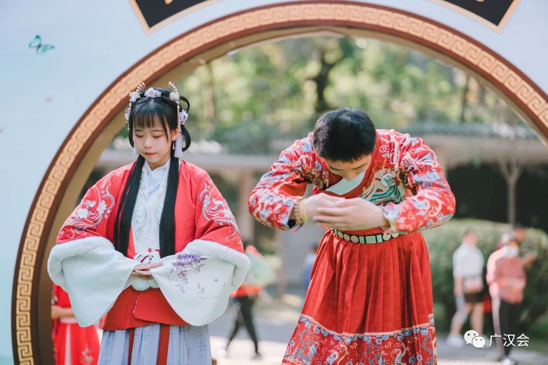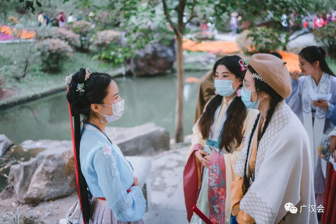 “羊城隽秀·云山时光”,2021广州市簕杜鹃花展百花来袭。受白云山明珠楼景区之邀,广汉会再次助力花展,为市民游客准备的汉文化专场和汉服NPC互动游戏。 11月26日花展的媒体日,簕杜鹃花仙在美美的簕杜鹃花丛中翩然而过。 媒体报道:太美了!超40种簕杜鹃花,5万盆时花,真正的花海等你来打卡! 11月27日,是汉服专场活动。来来来,认识一下花仙花神,玩NPC游戏时,才能又快又准地找到他们,完成任务呢。 舞动山水之间,寄情华夏千年。近期大家有没有被“舞千年”里美轮美奂的古典舞震撼到呢?这天来到白云山明珠楼的同袍,可一饱眼福,欣赏到古典舞、中国功夫、民乐演奏等汉服才艺表演。 《相和歌》鼓舞 ——高阁儿 《精忠报国》双节棍 ——赵春 《天下》竹笛 ——赵春 《无情画》歌舞—— 江瑟瑟(歌)、尔儿(舞) 《临安初雨》古筝伴舞—— 林俞汎(古筝)、青葙儿(舞) 《伏羲神天响》武术 ——无极元君、泠菲浔 《春水摇》独舞 ——晓夏 《湖光水色调》歌舞—— 友菱(歌) 、 江瑟瑟(舞) 一般男子行揖礼,女子行肃礼。推手为揖,引手为肃。行礼时,一人先行,然后受礼者答礼。 揖礼:左手在外,右手在内,双手胸口处向外平推,同时鞠躬四十五度,然后起身,手放下。 肃礼:右手压左手,双手交叠在腹部中间,微微屈膝,同时微点头。 学完汉礼,立刻可以在NPC游戏里派上用场 看完表演,汉服同袍们带领着一众街坊来到桃花涧玩起NPC游戏,重温唐诗宋词,通关者只要完成唱、跳、朗诵等任务即可获得集章兑换礼物。一边寻找花仙花神,一边将簕杜鹃花展的美景收入眼中。 游戏设计得特别有趣,吸引了几百位街坊和同袍参与,很多参与者还问第二天还有这个游戏不?广汉会的活动一向实用、有趣、超值呐,记得将我们公众号标星,第一时间接收最新的活动消息哟。 和“林深见鹿”合影就能完成任务咯 通关者需背诵一首包含“花”的诗词 通关者需唱一首包含“花”的歌曲 跳个健康操 再说个笑话逗笑花神就完成任务啦 有参与者反应花神很难找到,既然是花神当然在云中深处啦,认真看攻略的地图提示,还是很多同袍和小朋友完成7个章的打卡呢。 集齐7个章,召唤白云飞索票一张!特别提醒,获得了飞索票的同袍,要注意票面写的使用时间,不要错过哟。 获得蕴诗本草的明星产品体验包的同袍,如果觉得好用,可以到他家微店购买哟!广汉会会员购买护肤化妆品等还能有九折优惠。 白云山文创雪糕,造型漂亮且好吃,草莓味是小编的最爱。 活动策划:青葙儿、上官圈圈 主持:紫堇 表演:高阁儿、赵春、江瑟瑟、尔儿、林俞汎、青葙儿、无极元君、泠菲浔、晓夏、友菱 幕后:栗子、小牛 花仙花神:唐夏、璇卿、含露、南枝、渭水、映彤、青葙儿、诗思 通关卡发放:晗瞳 礼物兑换:梦江南、俊雯 幕后:小新、羽墨 李弘一、朱富元、墨寒、静静的云彩还有参与活动的同袍也相互拍美照上传到活动群,用镜头助力簕杜鹃花展。 集市对接:一江水 欢迎大家在评论区里留言活动参与感想。 再次感谢白云山明珠楼景区、白云飞索、蕴诗本草为本次活动提供丰富的奖品! 花展期间白云飞索推出了优惠票 (注:宣传图上白云飞索的票价,不是白云山门票票价哟~)通关者在“连理亭”比心合影完成任务中