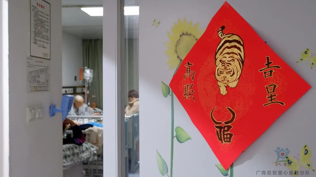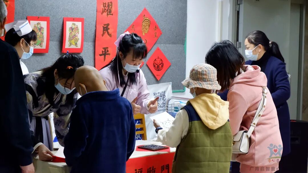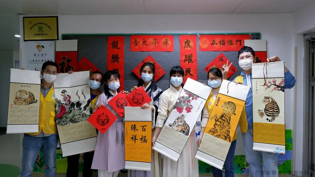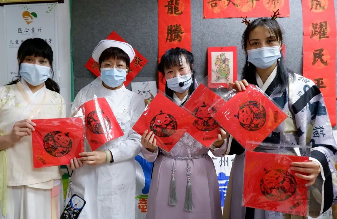 这次活动,每位患儿都收到一份带着美好祝福的礼物,感恩Viviyan一家人的大爱奉献,给肿瘤医院儿童肿瘤科的患儿们送的礼物,孩子们收到这些有趣的乐高积木,都非常惊喜,有几位年龄较大的患儿,拿到礼物后,马上放下手机,开始拼装。还有些小朋友说,这个颜色我没有,我要这个……一声祝福,一件礼物便能给孩子带来快乐与惊喜,感谢Viviyan和家人给患儿带来的祝福和慰问! 年画春联必然少不了,最近上官姐姐写了一批春联,还有绘制的三十多幅挂历,二十多斗方挥春,和少量春联,送给了小伙伴,医护人员,患儿……也贴在了病房,祝大家虎年大吉,小朋友们都能早日康复,阖家团圆! 感谢参与本次活动的俊雯老师,上官圈圈、心蓝以及启智童心童路的学生志愿者们。