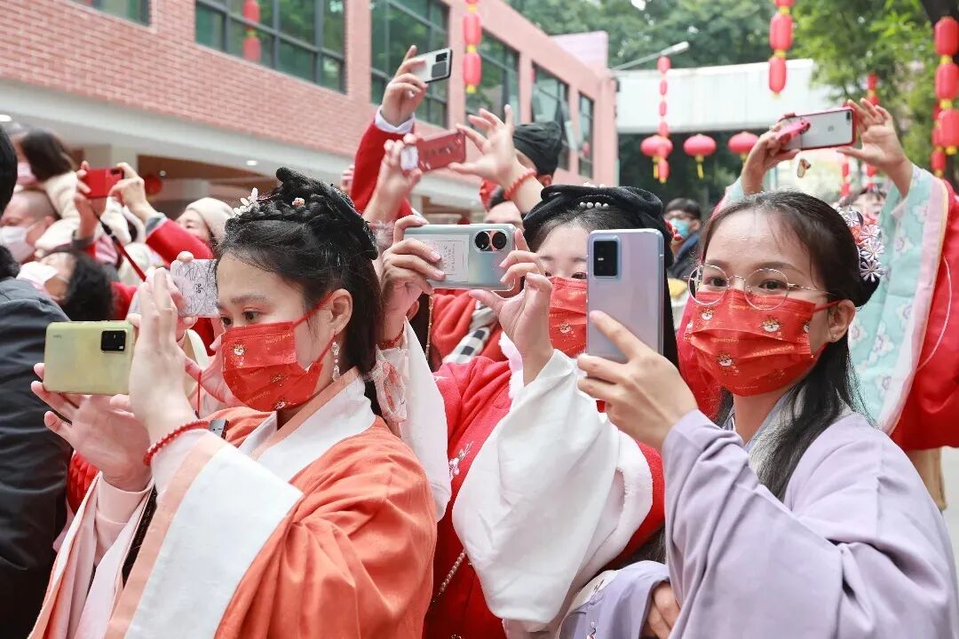 “广府味·幸福年”广府文化系列活动今天开幕啦! 2月6日(年初六),在严格做好疫情防控的前提下,“广府味·幸福年”广府文化系列活动组委会联合广州市总工会举办醒狮快闪活动。让因疫情关系不能来现场观看的广大群众和海外同袍,能通过网络了解到中国的传统文化,感受到浓厚的广府年味。 穿汉服过大年,广汉会二十多位汉服志愿者也到达现场,助力添彩! 本次快闪活动,是由省级非遗传承人赵伟斌团队,为大家倾情演绎!连环飞跃、钳腰饮水、360度回旋、坐肩上头、采青,一头红色的广东醒狮在离地面1.8米的梅花桩上来回飞跃,能近距离观赏到的同袍发出阵阵叫好声! 为了能更好地展现广府年味,广汉会的小伙伴还连夜赶制各式各样的花灯、晖春等,越秀区文化馆还特意为我们准备新年防护口罩! 这次“广府味·幸福年”的快闪活动,得到了央视频、南方日报、羊城晚报、广州广播电视台、越秀发布、越秀文体旅游和花城FM等多家媒体和平台的报道哟! 央视频:超燃!南国醒狮 https://w.yangshipin.cn/video?type=0&vid=n00002804ud 南方日报·南方+:超燃醒狮惊现北京路,广府味幸福年来袭 羊城晚报·羊城派:年初六,广东醒狮“闪现”广州市工人文化宫 花城+:【粤迎寅虎 年味湾区】超燃醒狮闪现北京路! “广府味·幸福年”广府文化系列活动于1月10日开始,并持续举行至2月21日。在此期间,通过线上线下相结合的方式,举行云赛诗词、非遗创意大赛、一日千年·古越今秀等活动。2月15日元宵节当天,将推出广府庙会元宇宙活动,让广大市民足不出户就可以与庙会幸福相约。 “广府味·幸福年”部分活动可以戳下方链接参与,详细活动可关注“广州越秀发布”公众号了解: 感谢越秀区文化馆的支持 感谢参与快闪的各位同袍 俊雯、小倩、唐夏、宥汎、柠檬、槿梨、多多、菁华、汝瑶、丽莹、米刚、子宁、梦江南、幼明、静云、艳容、阳光、羽宜、宛之以及其小朋友、左艳以及其小朋友、廖晓明以及其小朋友